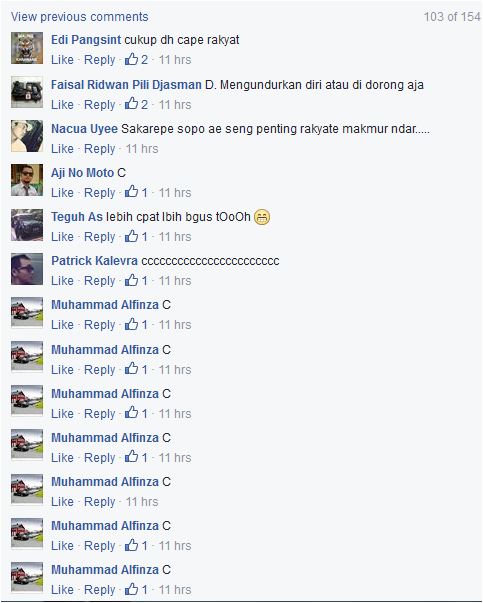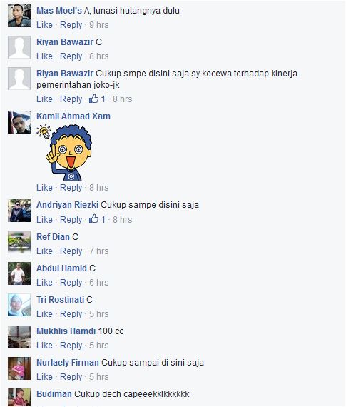 Mmang sih ini tidak serta merta menggambarkan kondisi real imasyarakat saat ini namun setiaknya dari sebuah koloni kecil yaitu Facebook ternyata hasilnya untuk tingkat kepuasan masyarakat kepada pemerintahan Jokowi-Jk ini masyarakat sangat tidak terpuaskan..!!