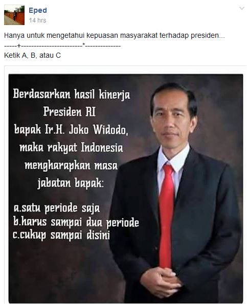 Photo Survei Yang Dilakukan Salah Satu Akun Facebook Tentang Kepuasan Masyarakat Terhadap Jokowi |